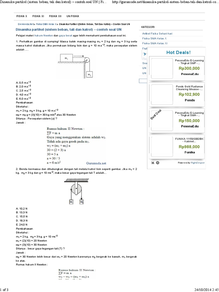 Soal Fisika Dinamika Partikel Kelas 10