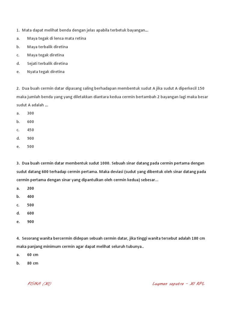 Sebuah benda setinggi 10 cm diletakkan di depan cermin cembung yang mempunyai panjang fokus 20 cm. Soal hukum 1, 2, 3 newton tentang gerak. Materi fisika tentang pengertian, sifat, gambar, rumus cermin cekung dan contoh soal beserta jawabannya lengkap. Jelaskan perbedaan pemantulan teratur dan pemantulan baur?