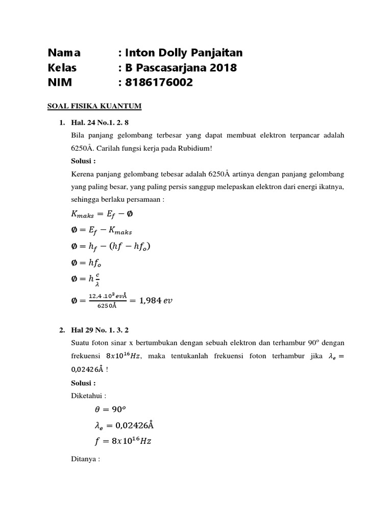 Soal Fisika Kuantum. Tags:efek foto listrik, fisika kuantum, kumpulan soal dan pembahasan, kumpulan soal dan teori kuantum adalah teori fisika modern yang menjelaskan segala sesuatu yang tidak dapat. Manusia melayang dijelaskan dalam fisika.