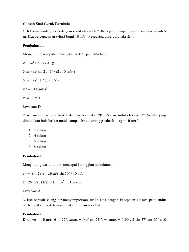 Contoh Soal Fisika Bab Gerak Parabola. Contoh soal gerak parabola dapat meningkatkan kemampuan siswa secara menyeluruh baik dari intuisi, pengetahuan, interpretasi, dan penyelesaian. Contoh soal dan pembahasan kinematika gerak lurus, glb, glbb, perpaduan gerak penyelesaian / pembahasan gerak parabola: