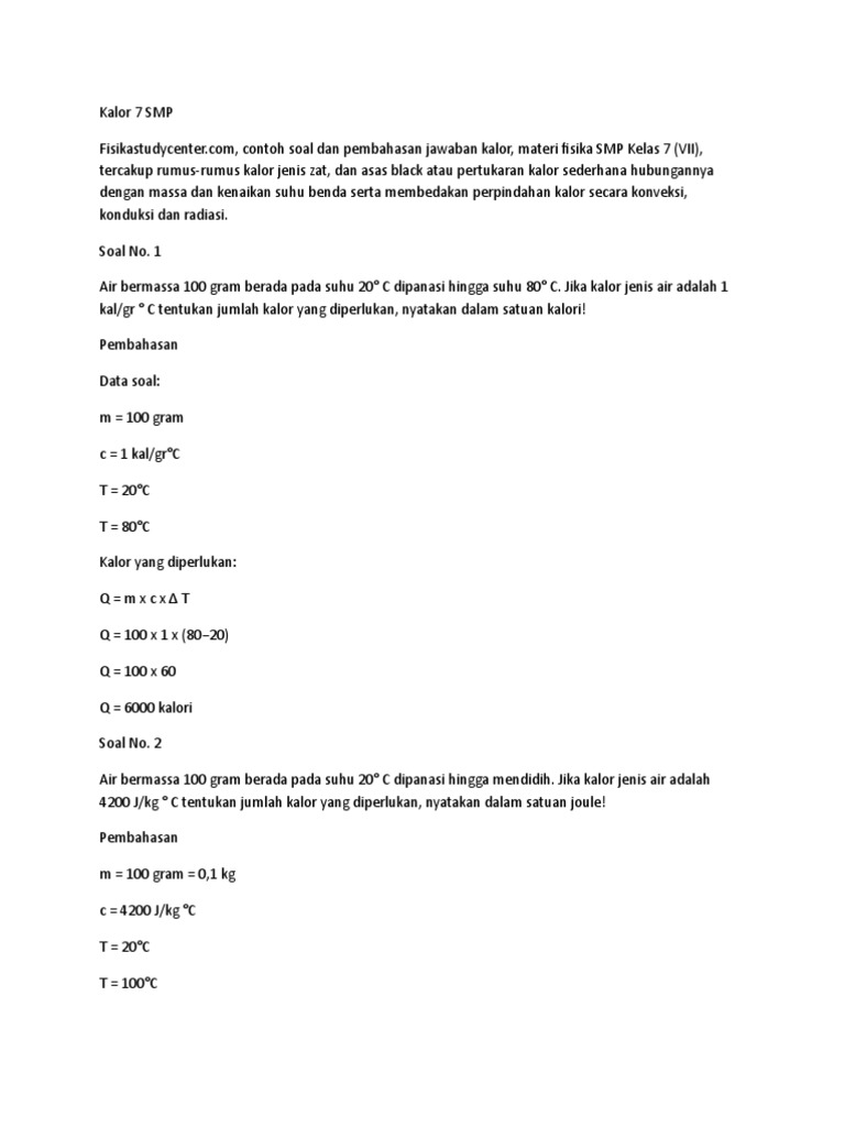 Soal Fisika Smp Kelas 7 Kalor