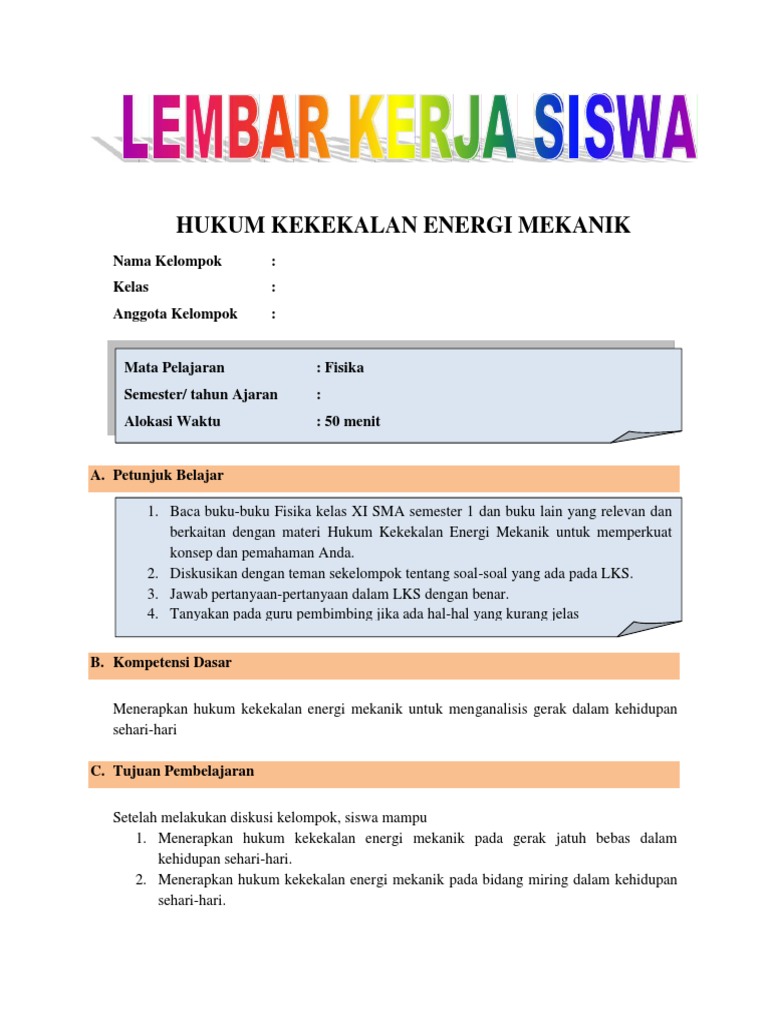 Contoh Soal Fisika Hukum Kekekalan Energi Mekanik. Menurut hukum kekekalan energi mekanik bahwa jumlah energi mekanik selalu tetap dengan syarat tidak ada gaya luar yang bekerja pada sistem. Jadi, hukum kekekalan energi merupakan hukum yang menyatakan bahwa energi itu kekal dan tidak dapat berubah (besarnya) sepanjang waktu, memiliki nilai yang sama baik sebelum sesuatu terjadi maupun.