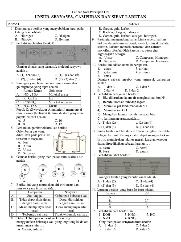 Soal Fisika Kelas 7 Tentang Unsur Senyawa Dan Campuran. (jika ingin mendownload soal ini, berikut linknya : Unduh latihan soal ipa di atas dalam format ms word di.