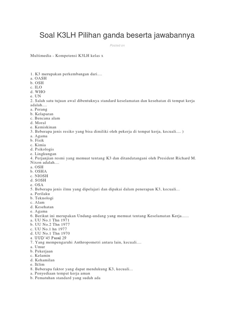 Soal Fisika Kelas 10 Pilihan Ganda Beserta Jawabannya. Pada artikel kali ini membahas tentang soal ujian pilihan ganda penjaskes untuk kelas 10 beserta jawabannya, semester 2. 40 soal fisika kelas xi semester 1 dan pembahasannya kurikulum 2013.