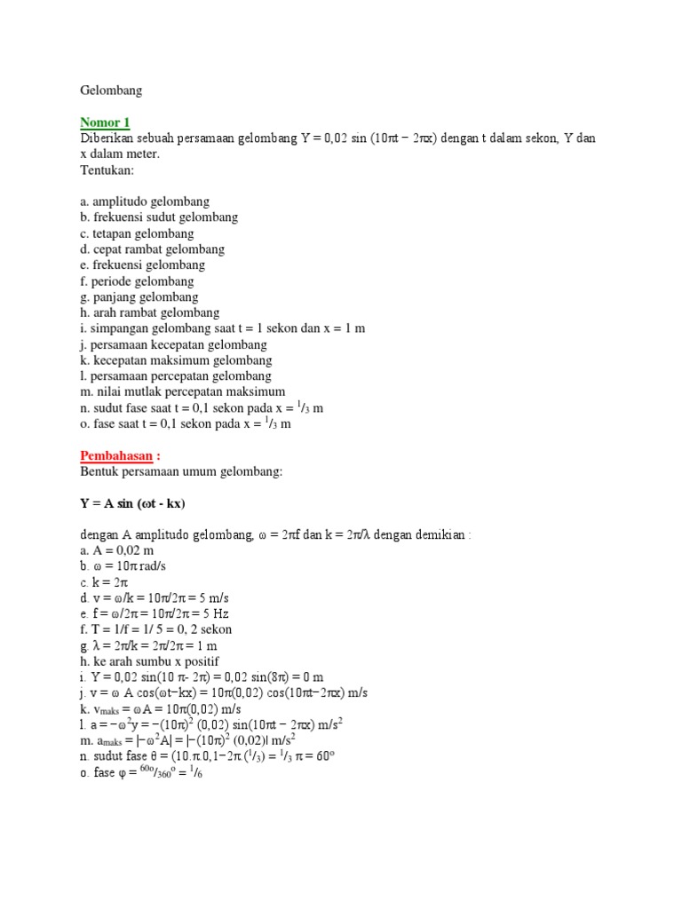 Soal Gelombang Berjalan Fisika Study Center. Jika persamaan gelombang bertanda negative maka gelombang berjalan ke kanan sedangkan jikabertanda positif maka gelombang berjalan ke ys = super posisi gelombang (m). Never ending learning, media belajar dan informasi.