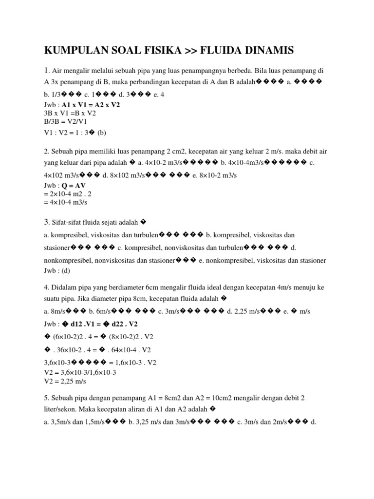 Kumpulan Soal Fisika from imgv2-2-f.scribdassets.com Di dalam video ini, ko ben akan membahas dan menjelaskan tentang soal soal yang biasanya diberikan dalam materi mengenai fluida dinamis dengan detail. 1 ahmad mengisi ember yang memiliki kapasitas 20 liter dengan air dari sebuah kran seperti. Model soal sbmptn fluida statis dan dinamis.
