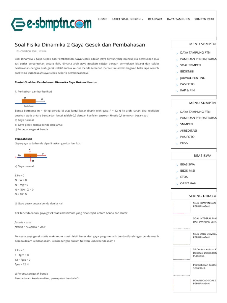 Contoh Soal Gaya Gesek Pengertian Macam Rumus Dan Pembahasan from kabarkan.com Kita tentu pernah mendengar terjadinya kecelakaan lalu lintas yang disebabkan oleh ban yang besarnya koefisien gesekan tergantung pada sifat permukaan antara bidang dengan permukaan benda. Persiapan #pat #ukk #fisika #sma. Jika dijabarkan satu persatu, mungkin masih banyak lagi penerapan gaya gesekan yang dilakukan untuk memenuhi kebutuhan yang beragam.